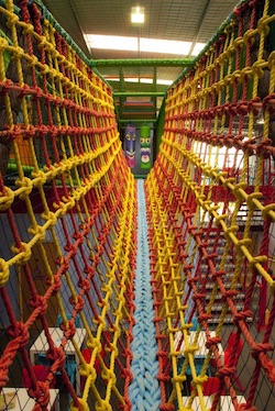 To be perfectly honest, I have no idea why these things are even in a soft play at all. They sure as hell aren’t soft, and they’re actually a danger to both kids and adults alike. The hanging mesh net thingys always have gaps big enough to ensnare unwary hands and feet and the climbing rope thingys are simply friction burns waiting to happen. Ropes should be used by boy scouts, fishermen and sheriffs in the Old West when they need to hang a bad guy. Nobody else has any need to be messing around with them.