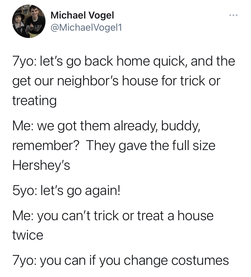 That's a veteran trick or treat move